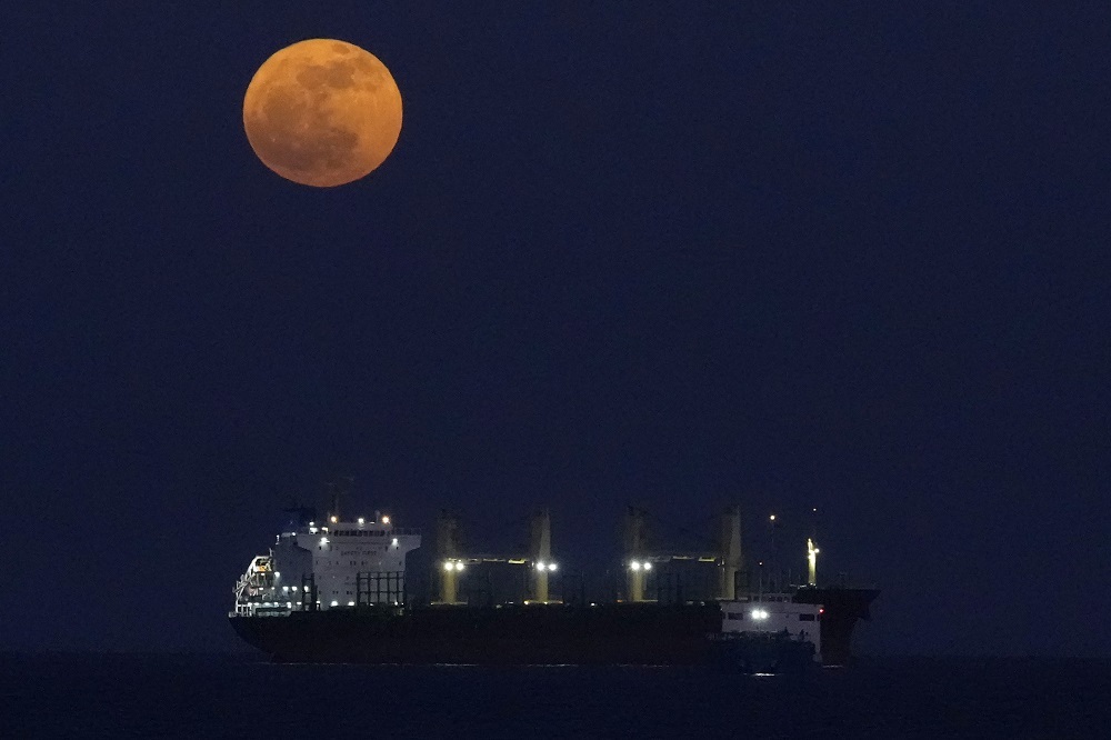 这是5月23日在塞浦路斯拉纳卡拍摄的圆月。新华社/美联
