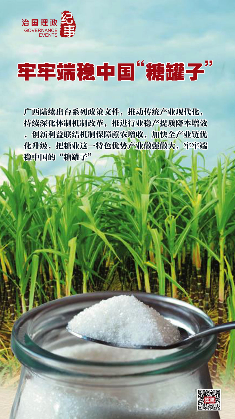 《广西壮族自治区人民政府关于深化体制机制改革加快糖业高质量发展的意见》《广西糖业降本增效三年行动计划工作方案》《广西深化糖料蔗良种良法技术推广工作实施方案》……广西陆续出台系列政策文件,推动传统产业现代化,持续深化体制机制改革,推进行业稳产提质降本增效,创新利益联结机制保障蔗农增收,加快全产业链优化升级,把糖业这一特色优势产业做强做大,牢牢端稳中国的“糖罐子”。