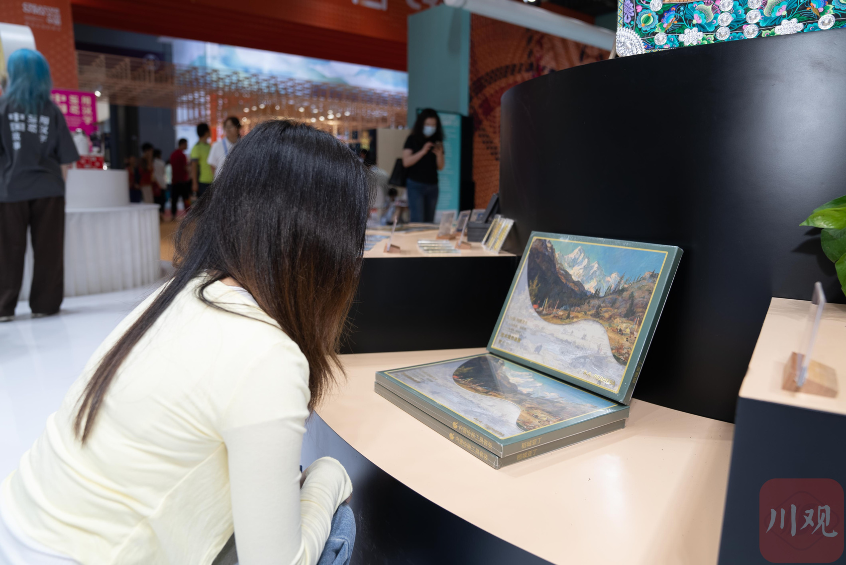 此外,还有正在四川博物院展出的《艺术与生命——瓦列里·列德涅夫作品展》的相关文创品。瓦列里·列德涅夫是俄罗斯著名艺术家,他创作的《稻城亚丁》,以其独具特色的艺术风格和表现手法,把繁华不失宁静、雄壮不失细腻的四川带到心灵深处。以这幅作品设计的“艺术填色油画”文创品,将原作100%复刻,进行数字扫描并编号。观众可在填色过程中了解油画的基本知识和技巧,同时感受艺术品蕴藏的独特审美。