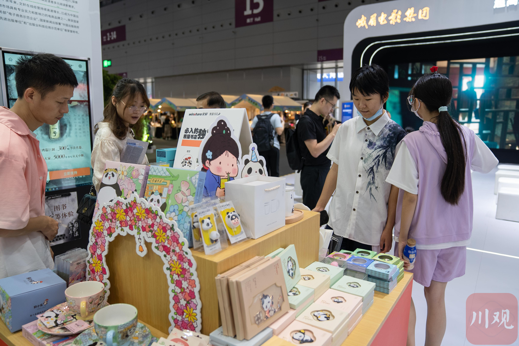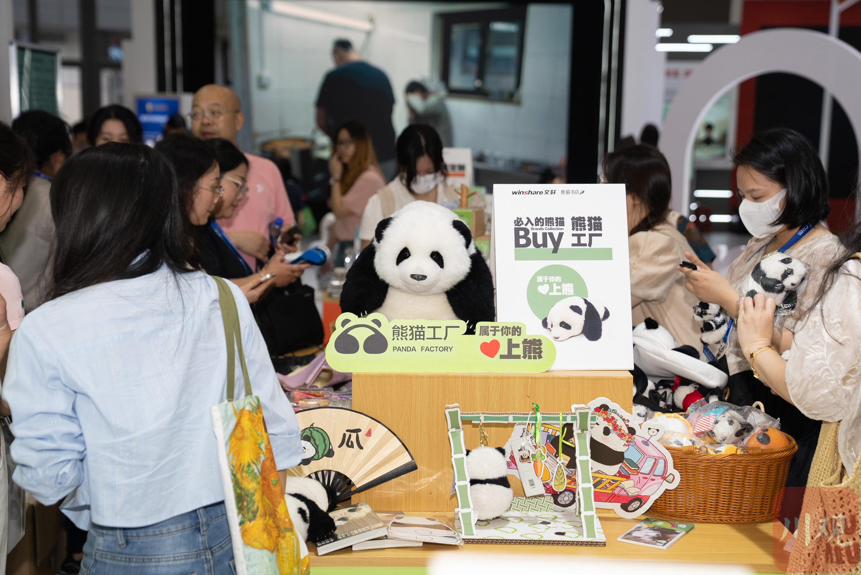 “我们有实体熊猫书店在成都,欢迎大家到成都来打卡参观。”展区工作人员梁凌一边介绍备受观众青睐的熊猫文创展品,一边发出热情邀请。