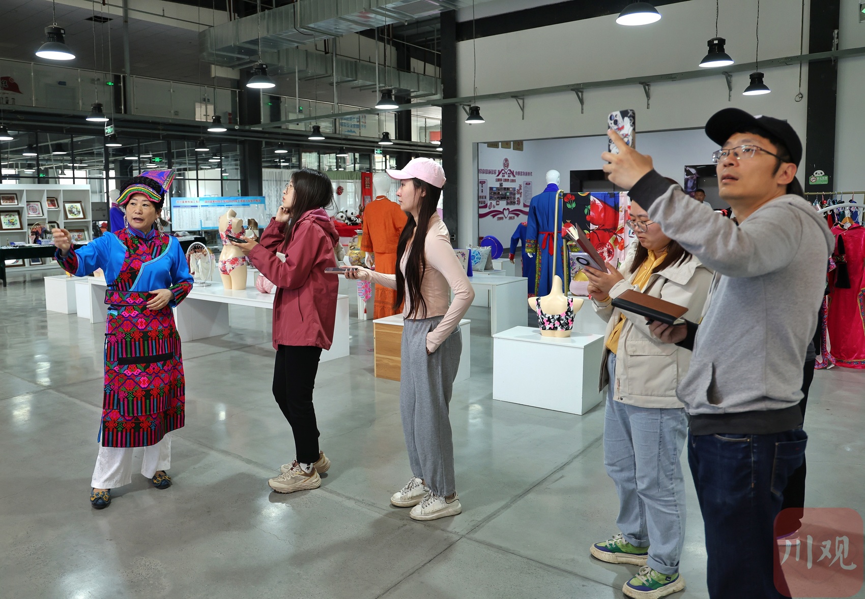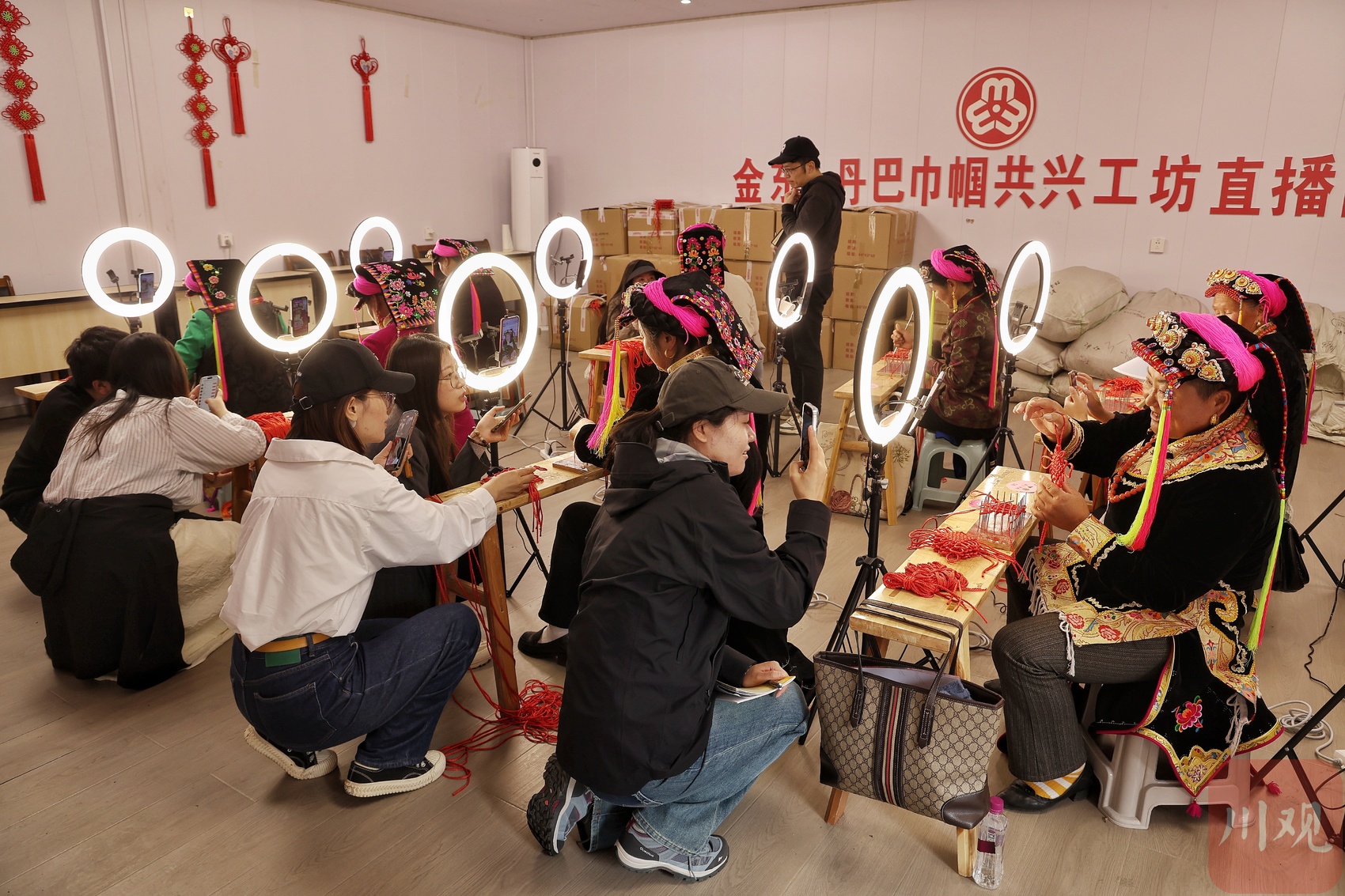 浙川行记者在丹巴来料加工坊直播间采访丹巴绣娘