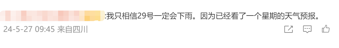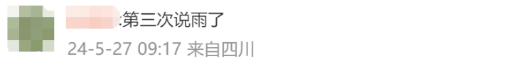 下雨的消息不断,但是不少四川网友表示只看到天气预报说要下雨,但自己所在的地方根本没有下雨,还很热!
