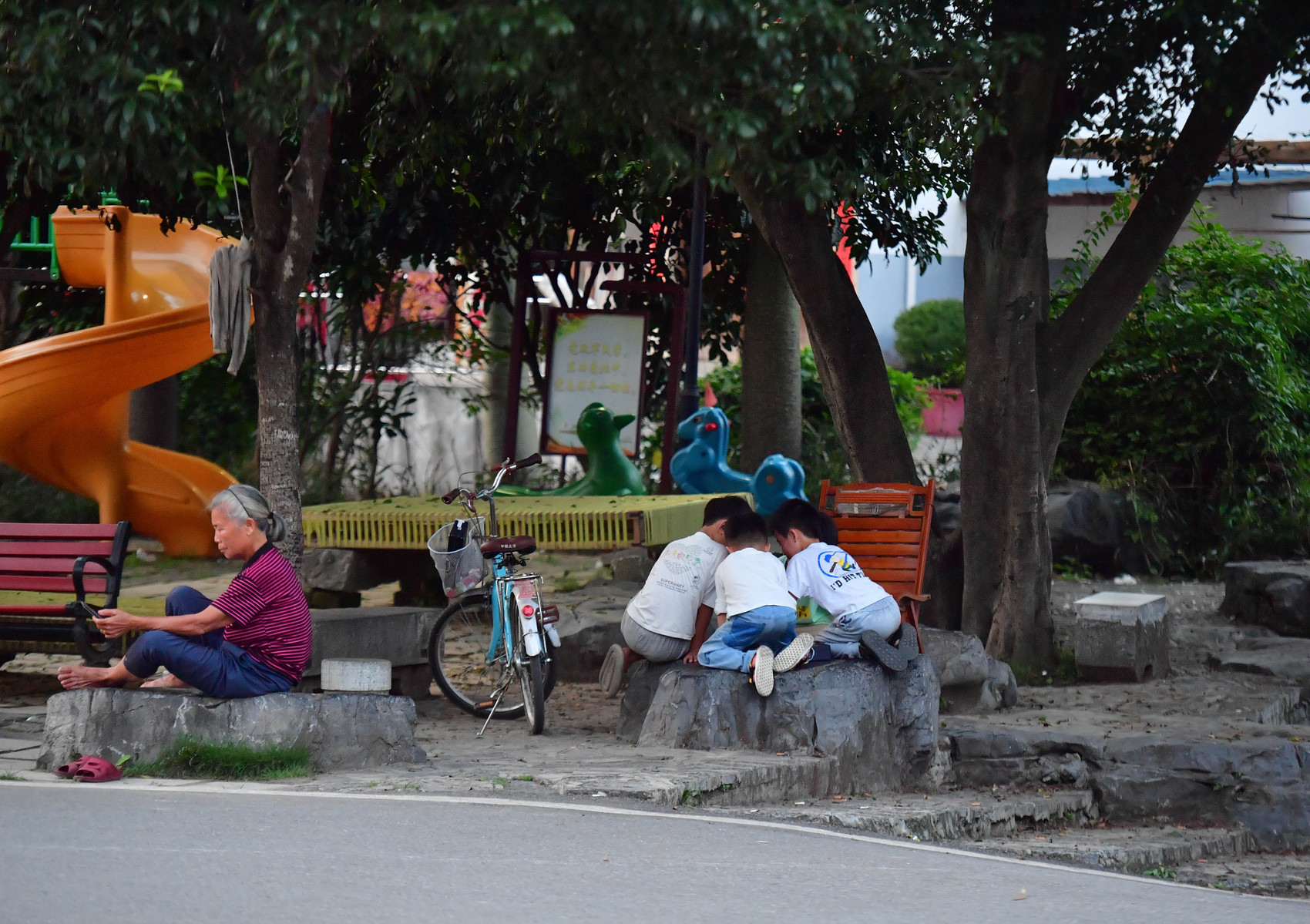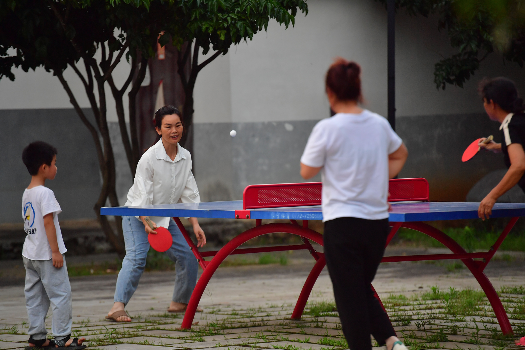 村民在小广场上打乒乓球(5月23日摄)。 记者:黄孝邦