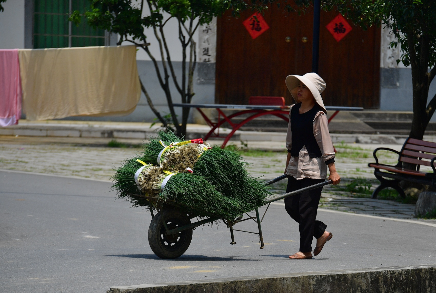 结束劳作的村民准备回家吃午饭(5月15日摄)。