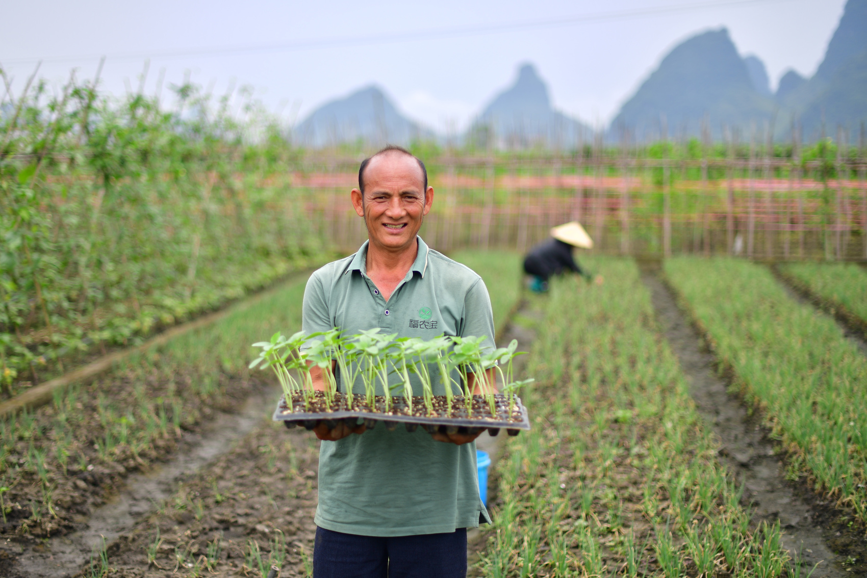 村民韦初满准备种植黄瓜(5月15日摄)。