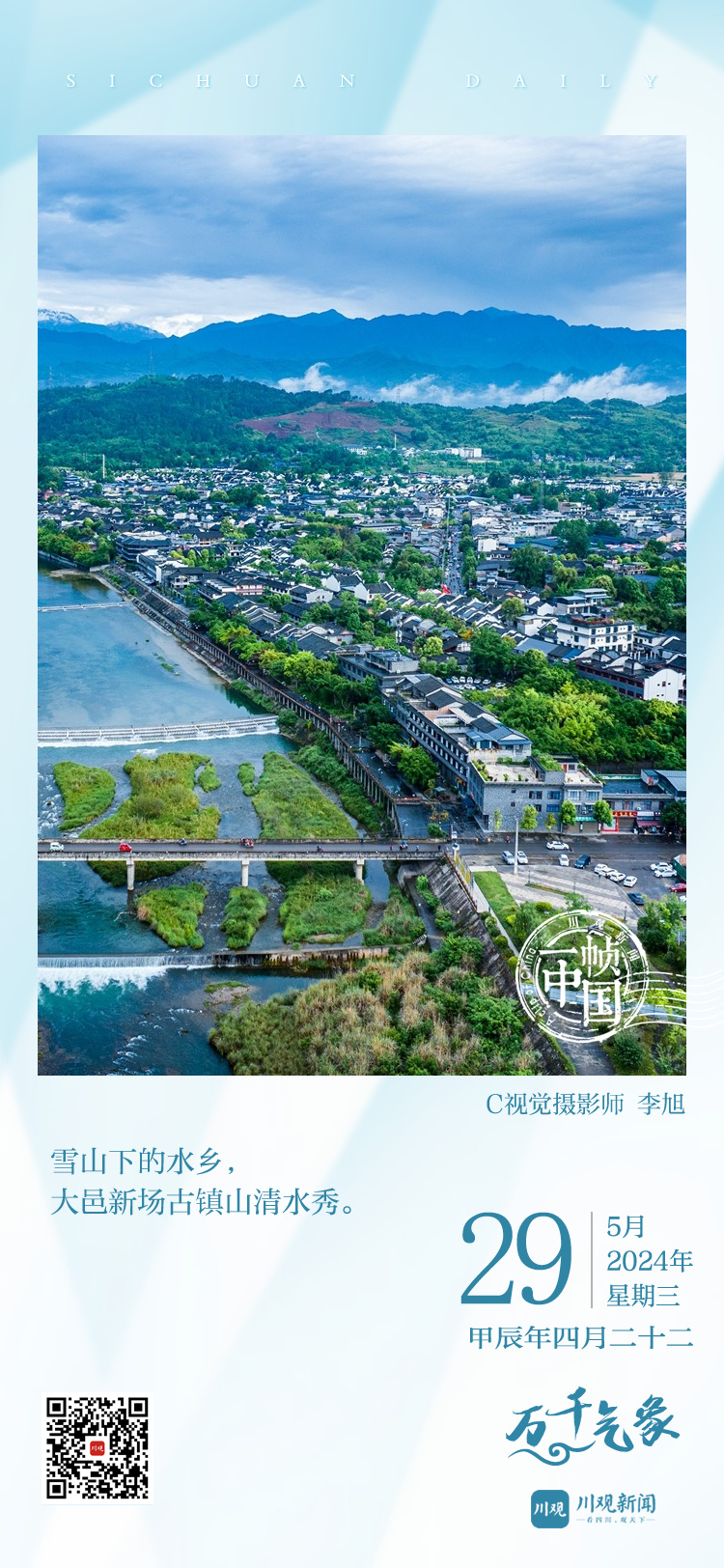 今天的《一帧中国》,和您一起来成都大邑县新场古镇,欣赏雪山下的川西水乡风情。