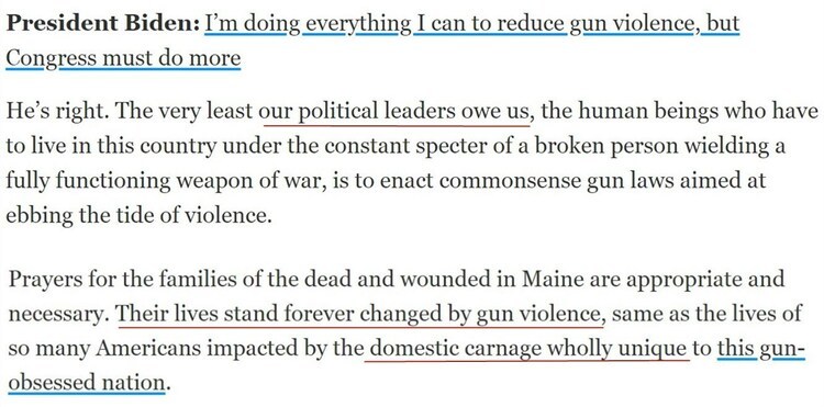 《今日美国报》曾评论说,美国至今没有一部能够遏制枪支暴力的有效控枪法案,“这是我们的政治领导人欠我们的”。