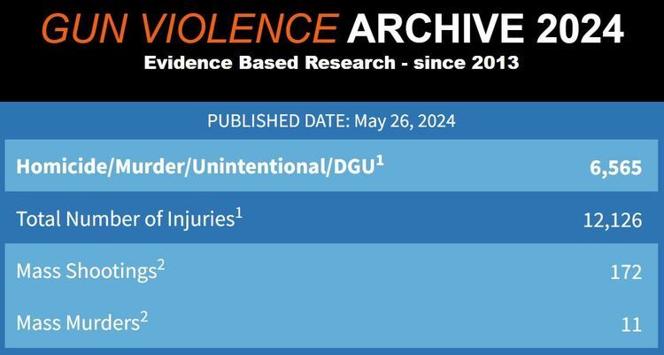美国“枪支暴力档案”网站截至5月26日的最新数据显示,全美今年以来已经发生172起大规模枪击事件,枪支暴力已造成6565人死亡。