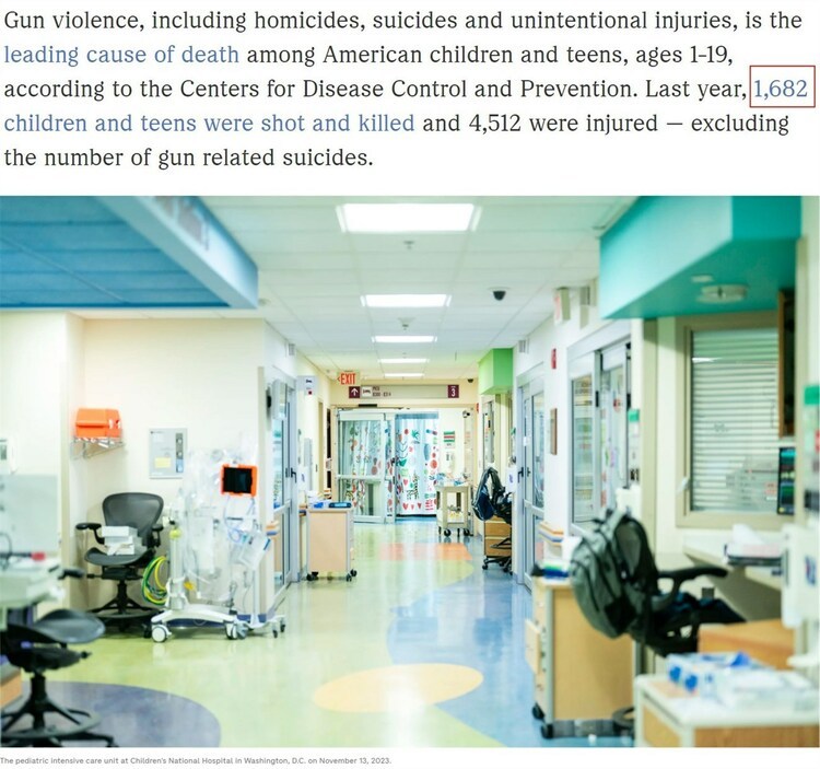 美国疾控中心的数据显示,2023年全年,美国儿童和青少年中共有至少1682人死于枪击,另有4512人受伤。这还不包括与枪支相关的自杀人数。