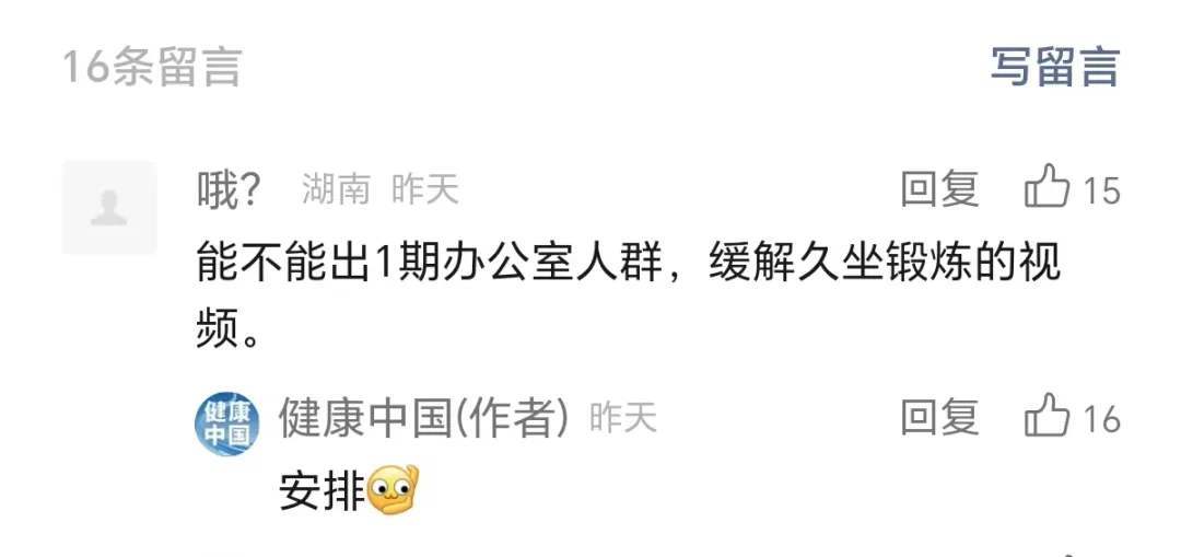 日前推送的科普文章脊柱为何是第二生命线? | 世界脊柱健康日引发了读者们的关注。在留言区,有网友希望出一期可以帮助上班族缓解久坐不适的锻炼视频。必须安排~