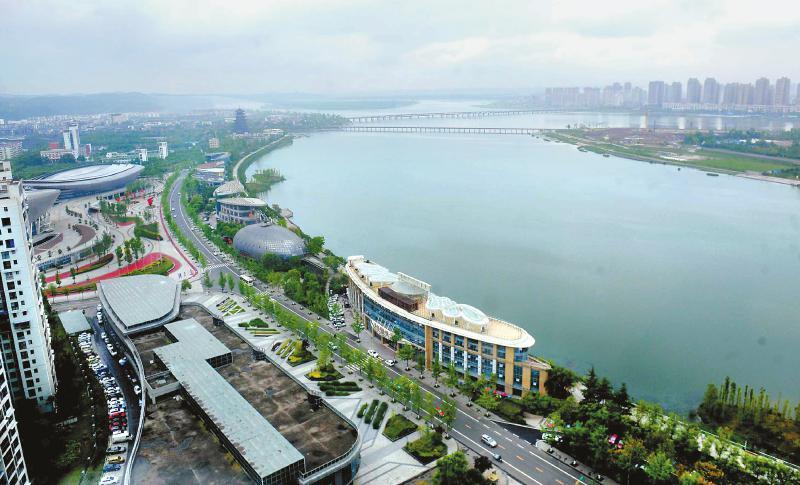 遂宁市船山区观音湖湿地公园紧贴涪江东岸沿线,荒滩岸线已打造成一条集绿色、生态、文化、经济为一体的滨水观光中心绿色生态走廊。目前,观音湖正在申报国家水利风景区,5月将接受专家组考评。图为5月7日,记者摄于遂宁市船山区观音湖湿地公园。 记者 衡昌辉 摄