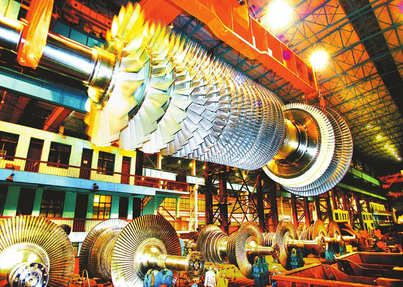 东方汽轮机有限公司里,正在进行燃机转子吊装,由东汽生产的F级重型燃气轮机国产化率已达74%。 德宣供图