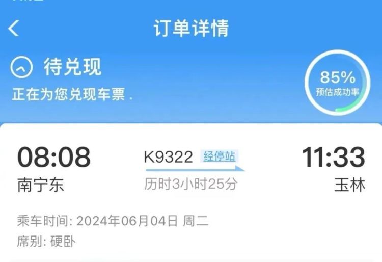 提交订单后,支持查看当前候补订单的预估成功率,预估成功率按照历史候补订单兑现情况测算,仅供参考。