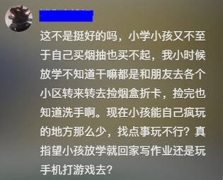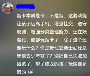 在这两难背后,小白觉得更体现了一种无奈:当前,我国吸烟人口达到3.5亿,通过一系列科学控烟措施,全国15岁以上吸烟率呈下降趋势,但在我们身边,仍然有许多把吸烟当做吃饭喝水一样平常的人们,在这其中,许多人正为人父母或者爷爷奶奶,他们经常吸烟,自然就客观上为“烟卡”的流行加了一把力。在针对“烟卡”的争议中,有部分家长认为对其的担忧过度,因为他们就一直在吸食香烟,且“烟卡”不会和之前的“奥特曼卡”“水浒卡”一样需要花钱买,他们只需要把抽剩的烟盒交给孩子,甚至翻垃圾都可能捡到“SSR”,性价比更高,总比打游戏好。