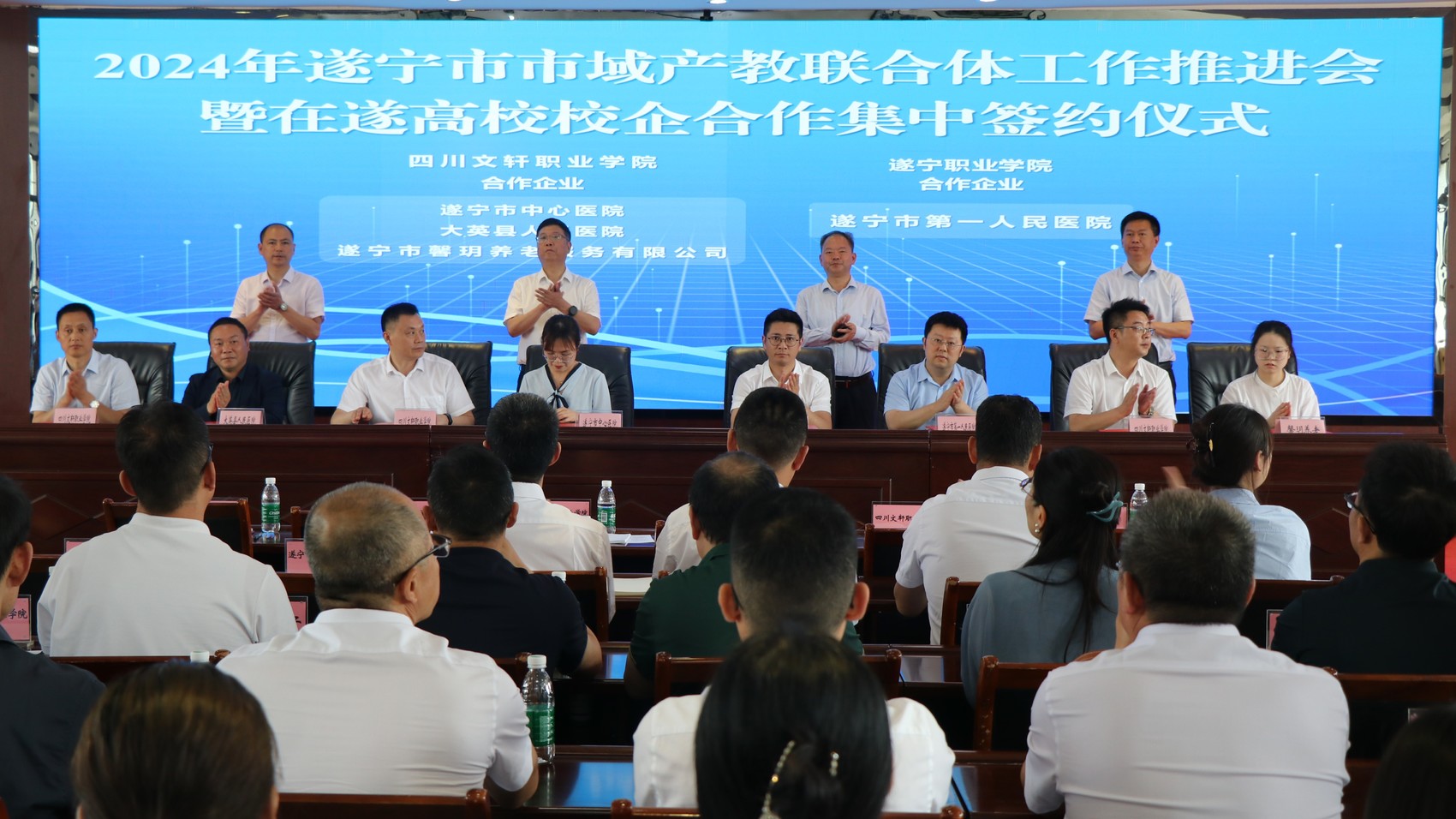 近日,遂宁举行市域产教联合体工作推进会暨在遂高校校企合作集中签约仪式,5所在遂高校与12家企事业单位集中签约,推动产教深度融合。