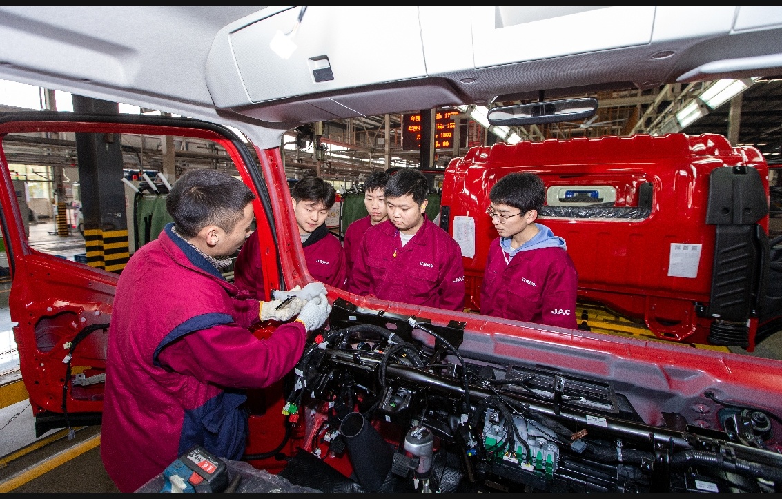 高职院校学生在四川江淮汽车有限公司实习实训。遂宁市教育和体育局供图