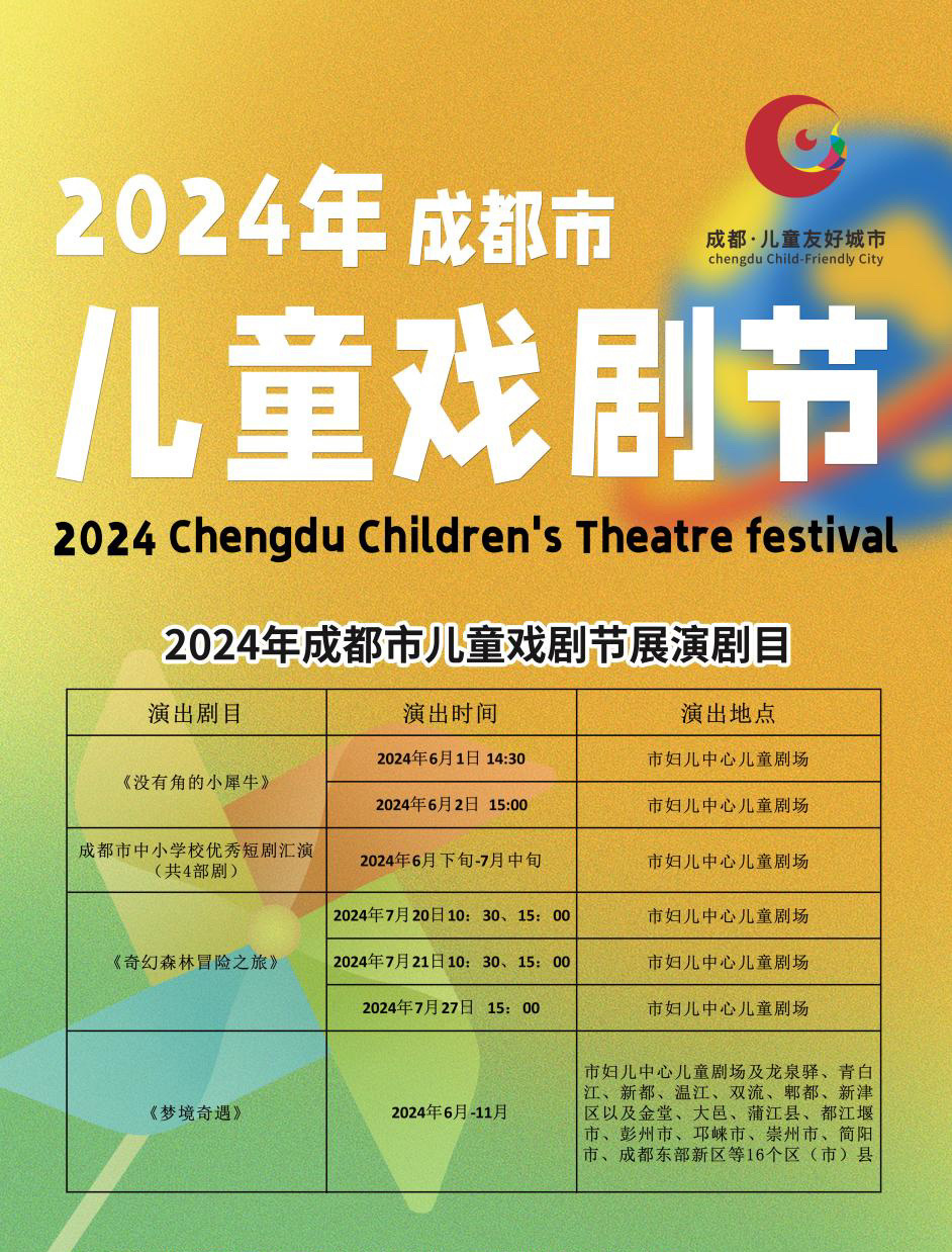 其中,活动启动仪式将于6月1日在成都市妇女儿童中心儿童剧场举行,并开展首场儿童剧展演活动,来自省、市专业院团、中小学校创排的7部优秀剧目将逐一亮相。