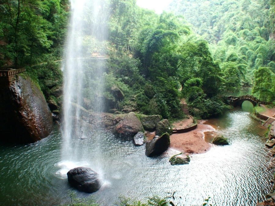 沐川竹海位于四川省乐山市沐川县永福镇和沐溪镇,距乐山 120 公里,距成都200多公里。景区总面积 50余平方公里,地属丹霞地貌,平均海拔 450 米,中心旅游区林竹面积10余平方公里。绵延起伏的山峦河谷间有成片慈竹10万余亩,绿波荡漾,逶迤成浪,故得竹海之名。丹霞地貌与竹海相映,构成一幅“绿竹难掩丹霞山、别有洞天桃花源”的碧海丹山图 。2023年,沐川竹海景区游客接待量达18.69万人次。