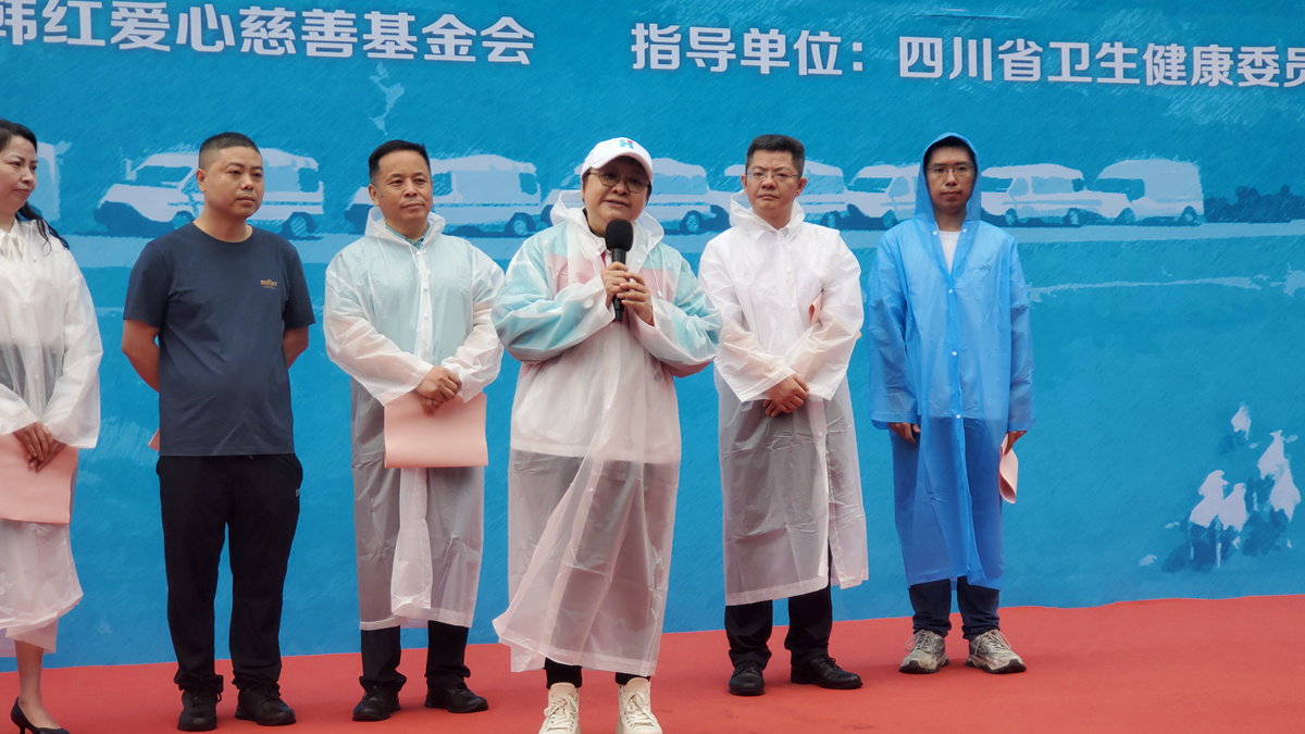 四川本地月捐人代表赵攀出席仪式并发言,表示今后将以自己的力量继续支持家乡的基层医疗卫生建设,也希望更多人加入月捐人行列,为公益事业添砖加瓦。随后,受赠卫生院代表进行分享,对基金会捐赠的救护车等医疗物资表示感谢,并承诺将长期扎根乡镇,持续奉献基层。