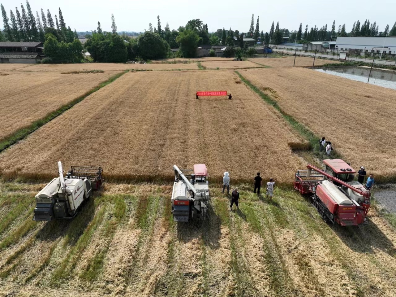 绵竹市小麦机收减损大比武活动现场。受访者供图