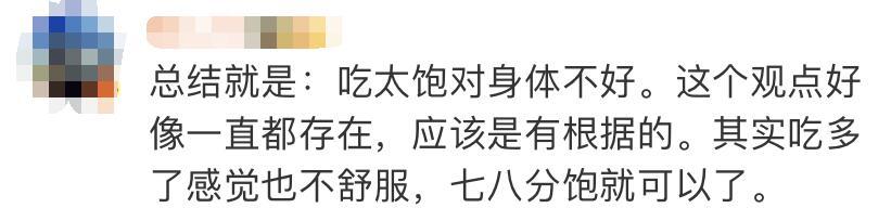 对一般人群来说,最好饭吃七八分饱,时常让身体保持微微的饥饿感。特殊患病人群,比如常低血糖的人群等,饮食则应遵医嘱。