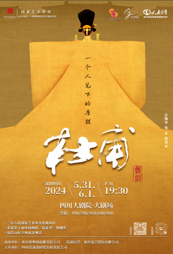 舞剧《杜甫》由编导过《只此青绿》《永不消逝的电波》的中国舞坛“双子星” 韩真、周莉亚主创,自首演以来获得广泛关注,三次入选国家艺术基金资助项目,获得中国舞蹈界最高奖项“荷花奖”舞剧奖。