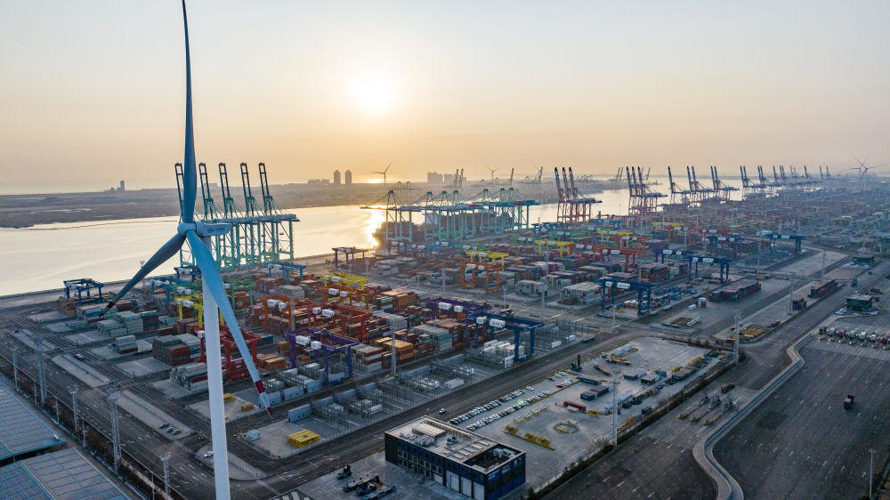 看似平常的码头作业,背后却另有玄机——整个过程达到了“零碳”排放。2021年底,随着两台风机叶片缓缓启动,这座全球首个“智慧零碳”码头的智慧绿色能源系统开始并网发电,通过风电、光伏发出的绿色能源,源源不断为码头生产提供能源。
