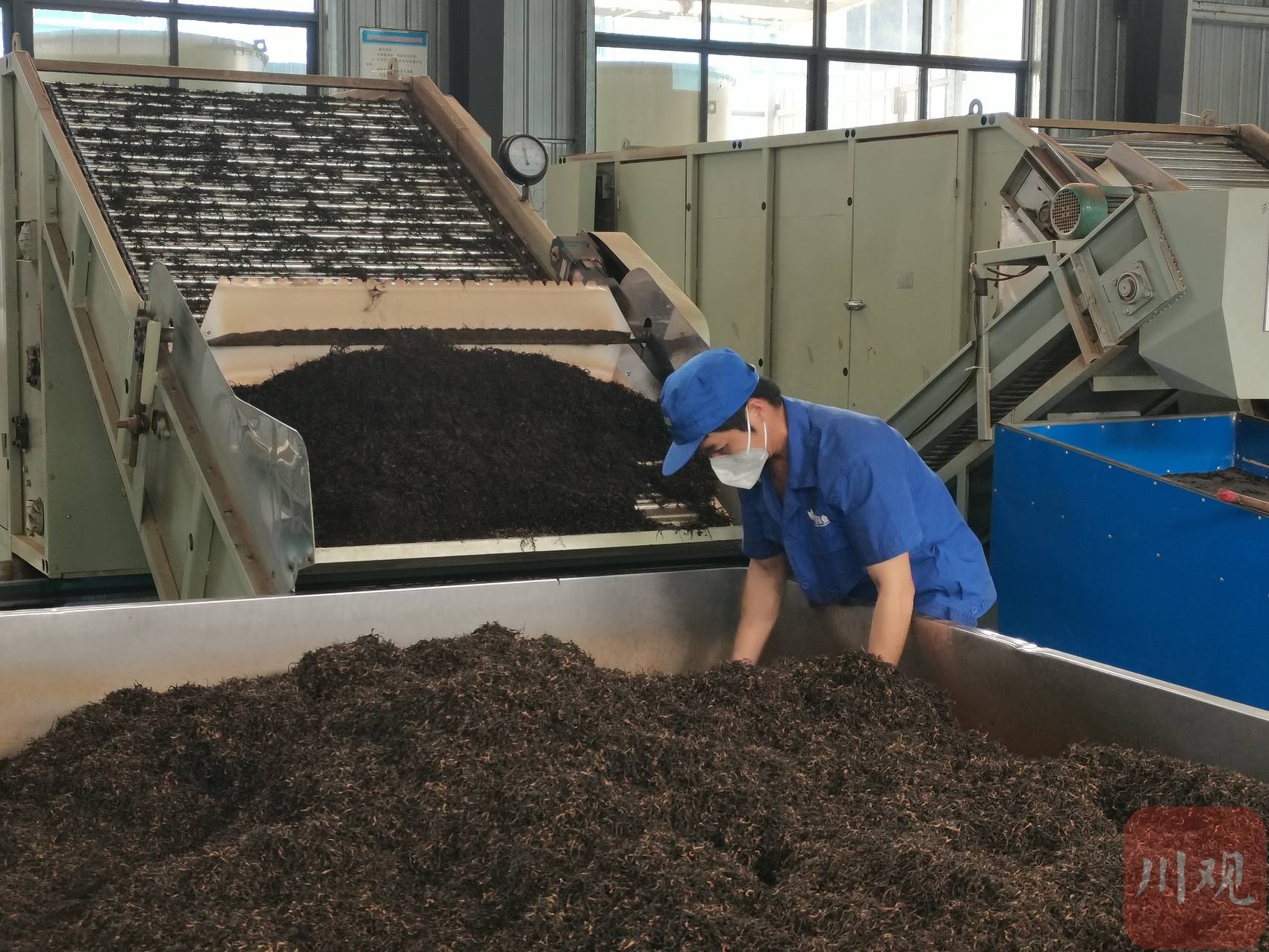 当天下午,走进宜宾醒世茶业有限责任公司红茶粗制加工车间,机器设备高速运转,几名工人正对茶叶进行烘干处理,以便进行下一步工序,车间里不时飘出一缕缕茶叶的清香。