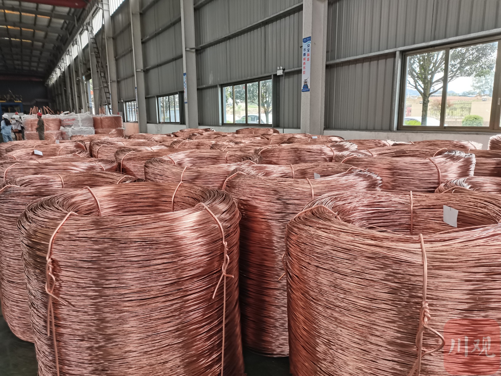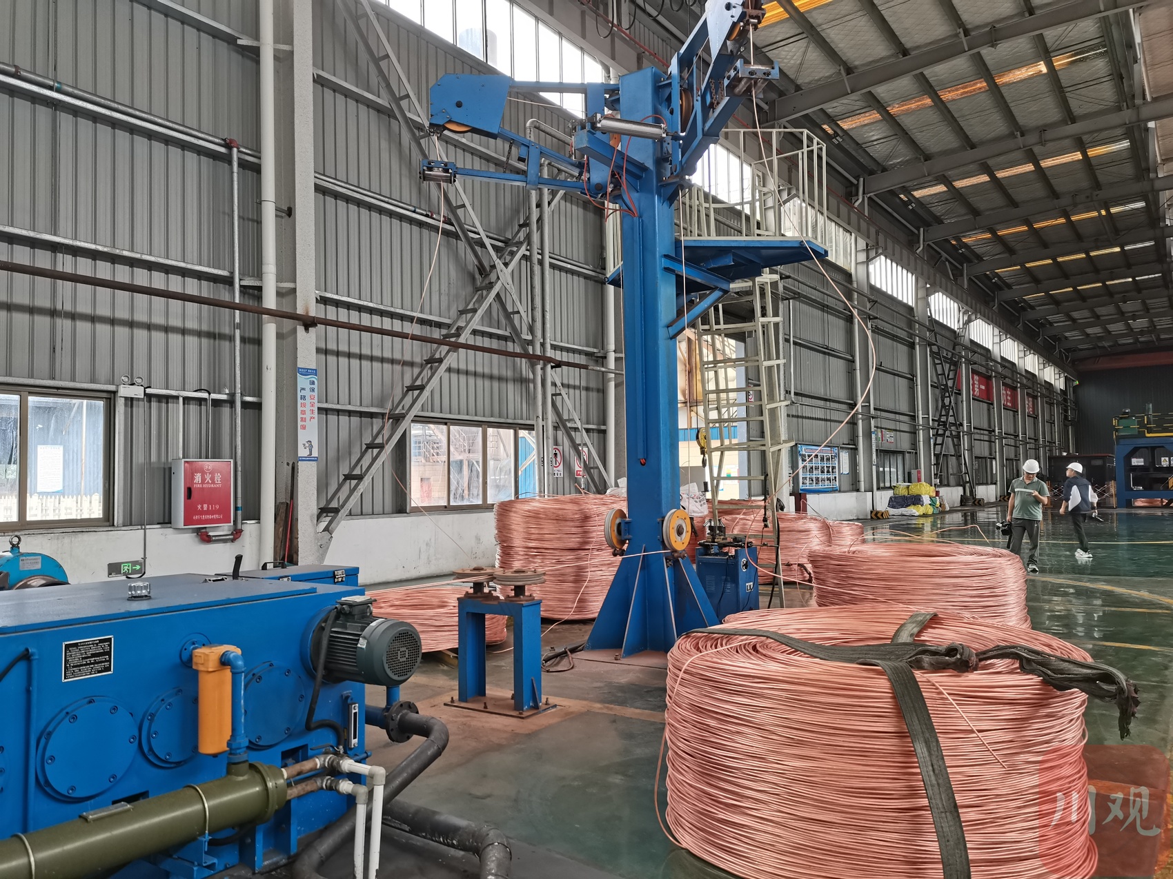5月30日,四川明珠金属材料有限公司生产车间内,机械轰鸣,两条生产线飞速运转,一根根铜线在这里经过加工变成线缆,现场一派热火朝天。