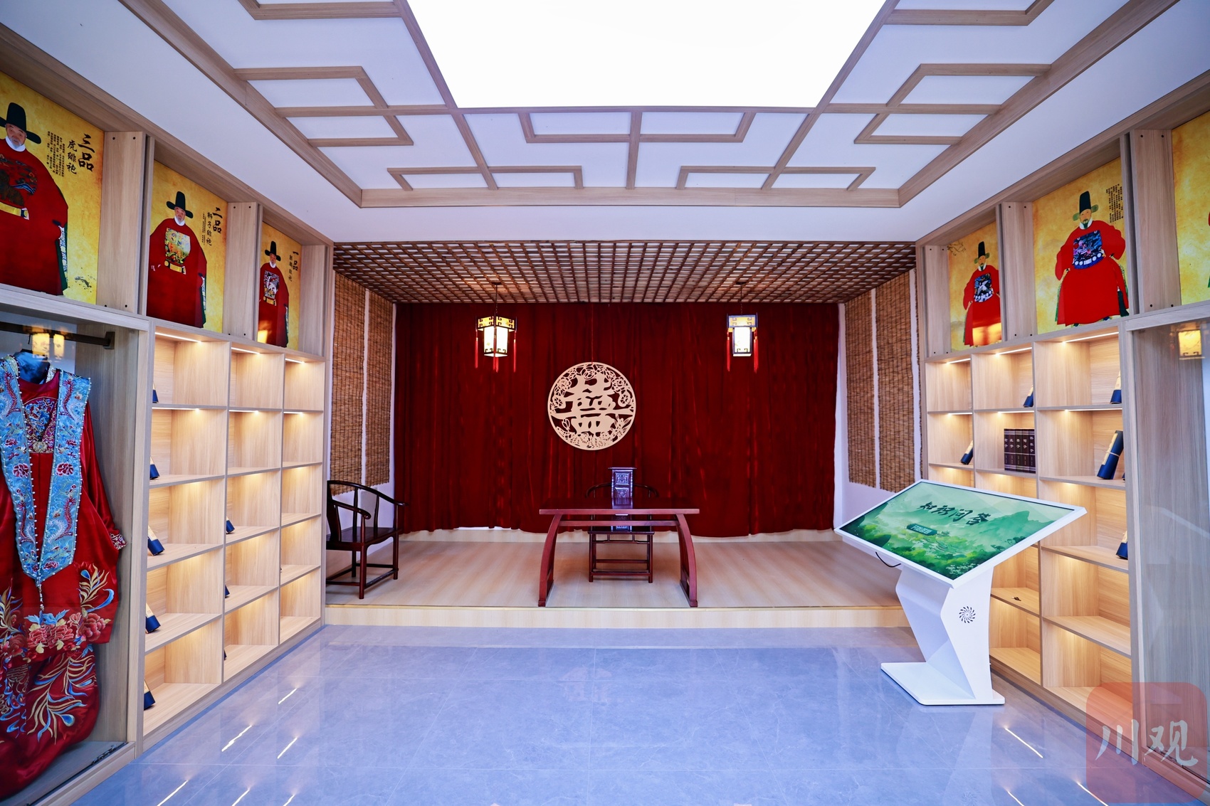 新落成的洪谟文化陈列馆内,丰富的文献资料和实物展示了周洪谟的生平事迹,他入仕46年,官至明成化年间礼部尚书,还乡后主纂《叙州府志》,一生践行“为国”“为民”“为儒”的理念。在馆内的明朝服饰展示和互动体验区,参观者还能穿上明朝的服饰体验打卡,亲身体验明朝的文化氛围。