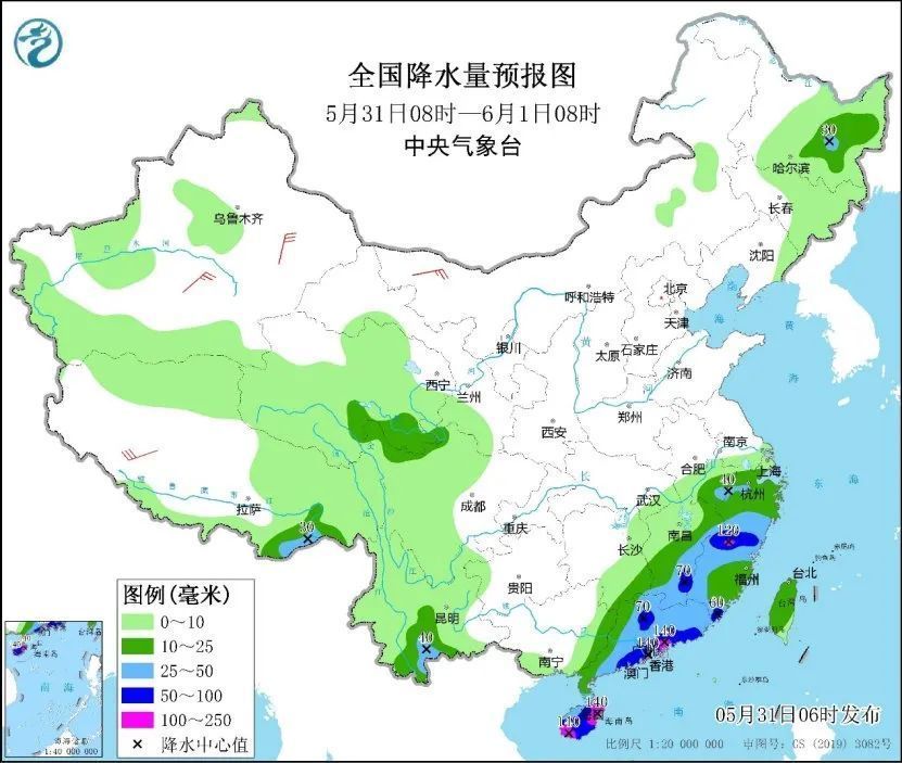 预计今天,受热带低压影响,浙江西北部和南部、安徽南部、福建北部和西部、江西东南部、广东、海南岛、云南南部以及西藏东南部等地部分地区有大到暴雨,其中,福建北部、广东东部沿海、海南岛东部和西南部等地局地有大暴雨(100至140毫米)。上述部分地区伴有短时强降水(最大小时降雨量20至50毫米,局地可超过70毫米),局地有雷暴大风等强对流天气。