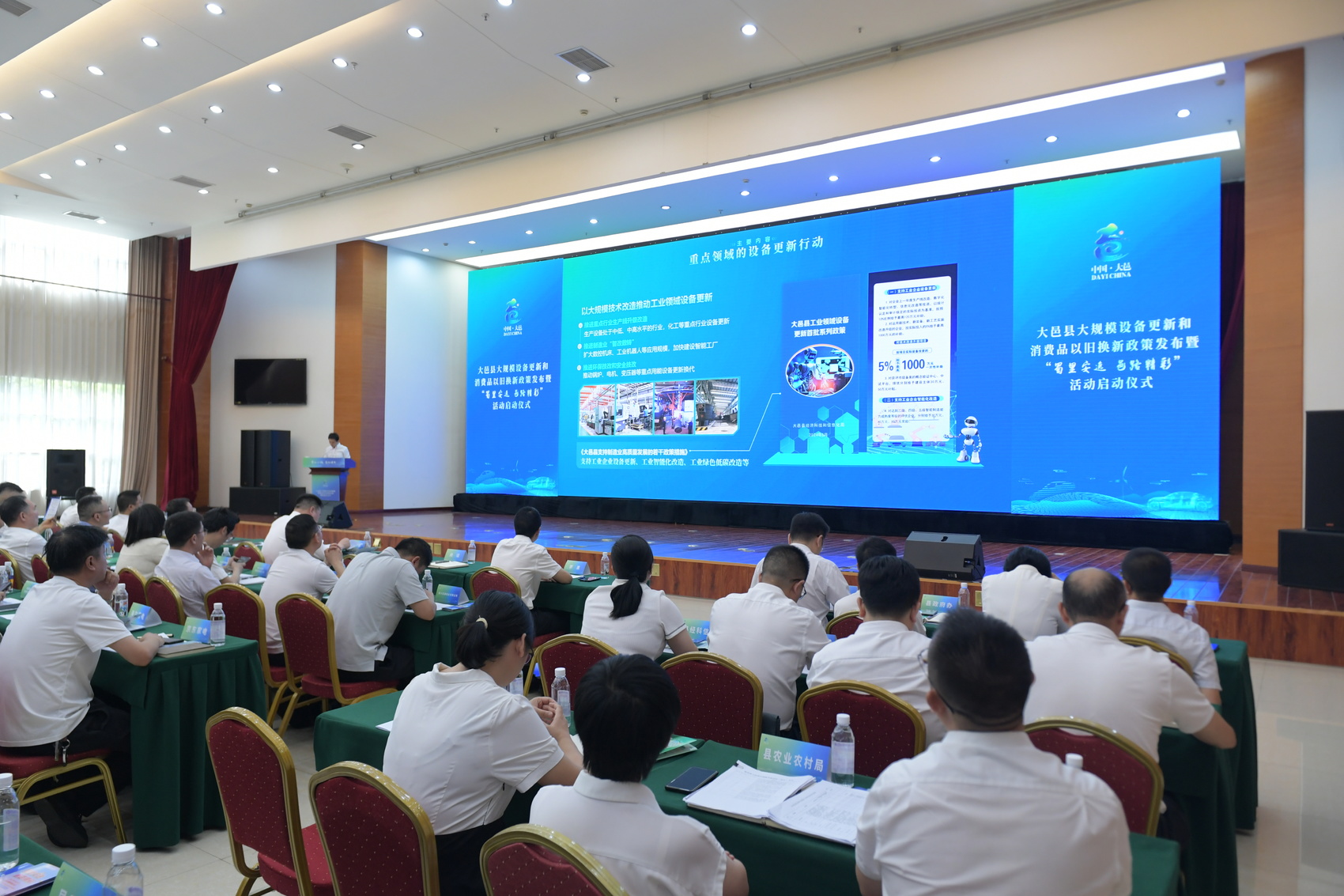5月31日,成都市大邑县举行大规模设备更新和消费品以旧换新政策发布暨“蜀里安逸·邑路精彩”活动,发布并解读大邑县大规模设备更新和消费品以旧换新政策。