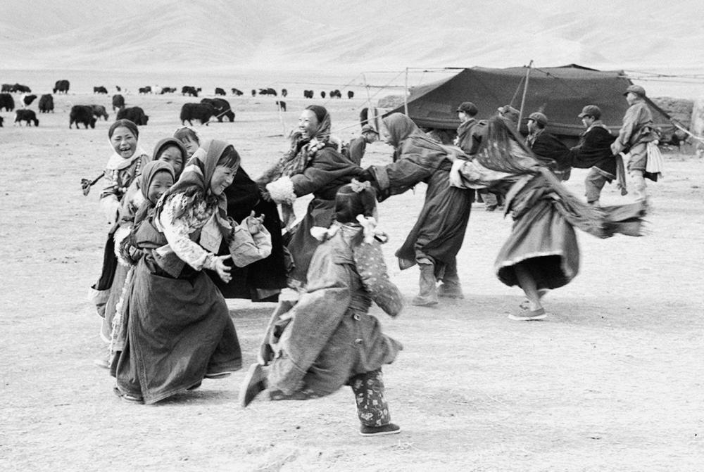 1964年,青海省海南藏族自治州原河卡乡(现河卡镇)的小学生们在做老鹰抓小鸡的游戏。