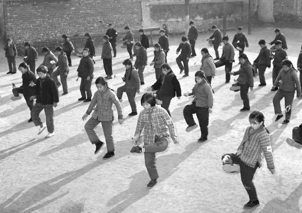 1965年,当时的北京市崇文区兴隆街第一小学在学生中开展踢毽子活动。
