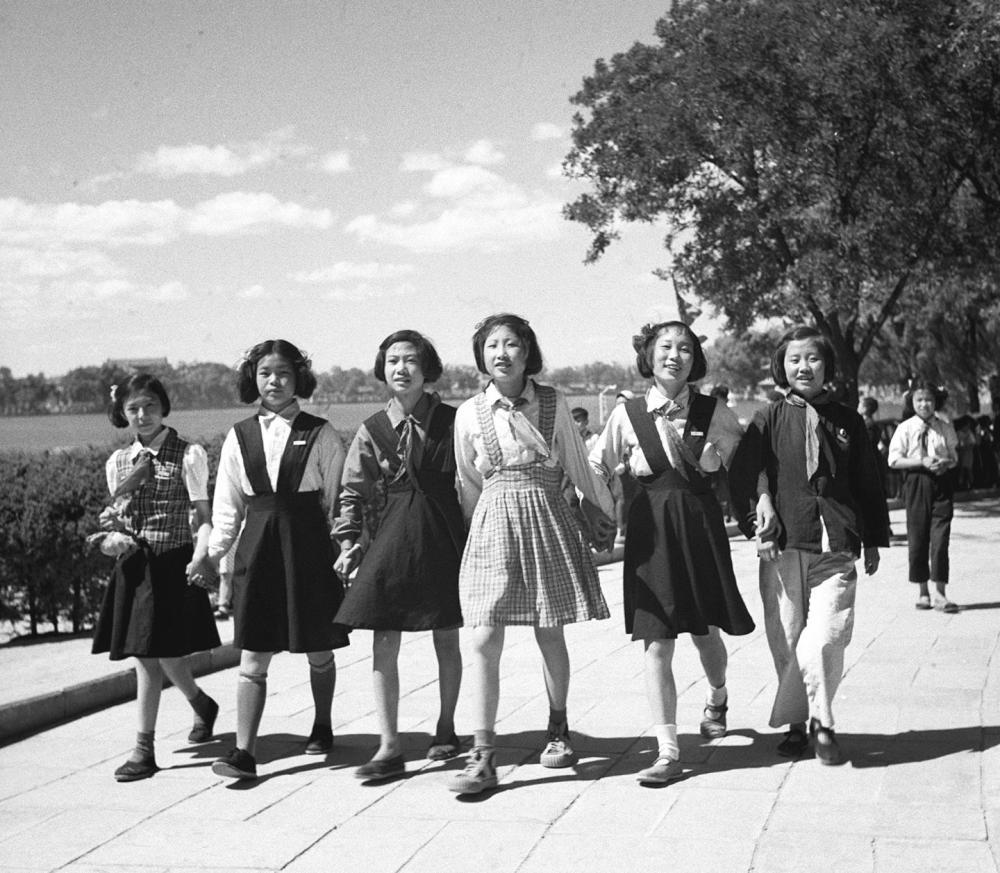 1952年,为庆祝“六一”国际儿童节,北京市少年儿童们欢快地在北海公园内游园。