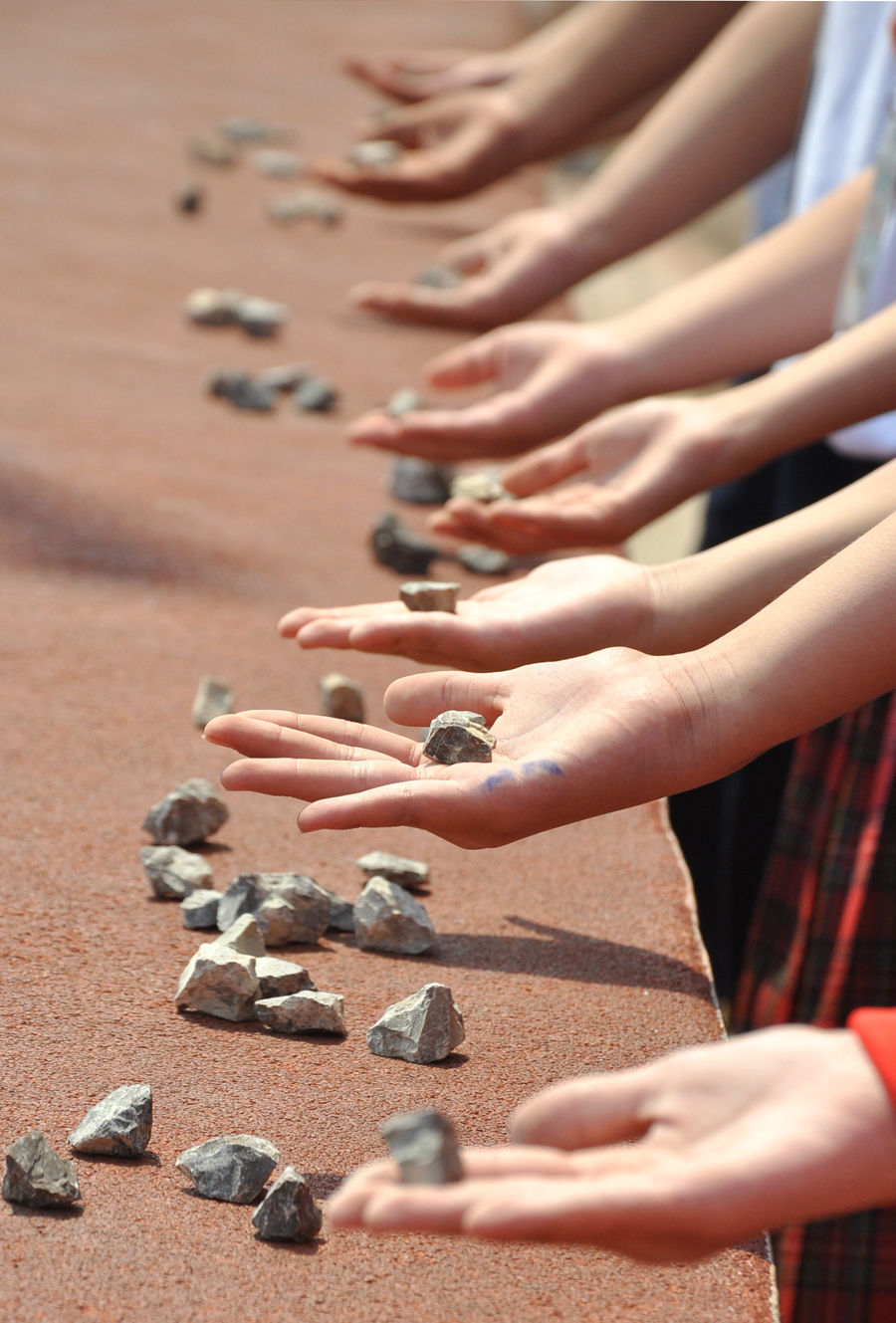 2013年9月2日,山东省淄博市沂源县荆山路小学的学生在玩抓石子游戏。