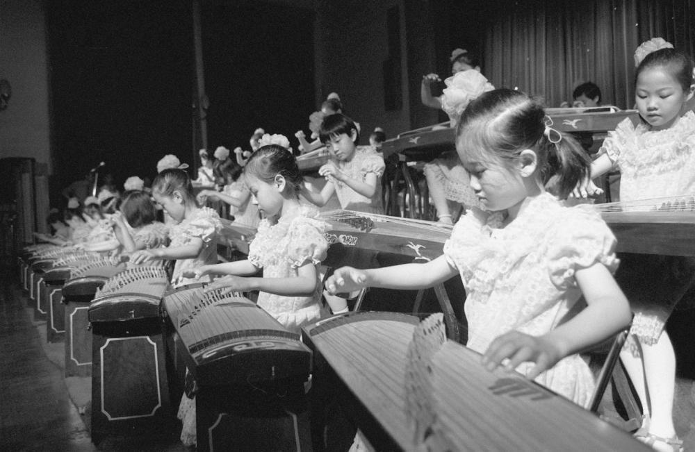 1990年5月27日,为庆祝“六一”国际儿童节,中国少年儿童活动中心举办慰问首都儿童教育工作者联欢会。这是活动中心艺术团的小演员们表演节目。