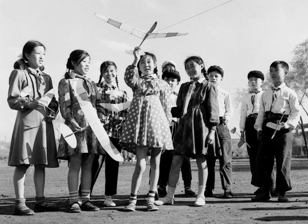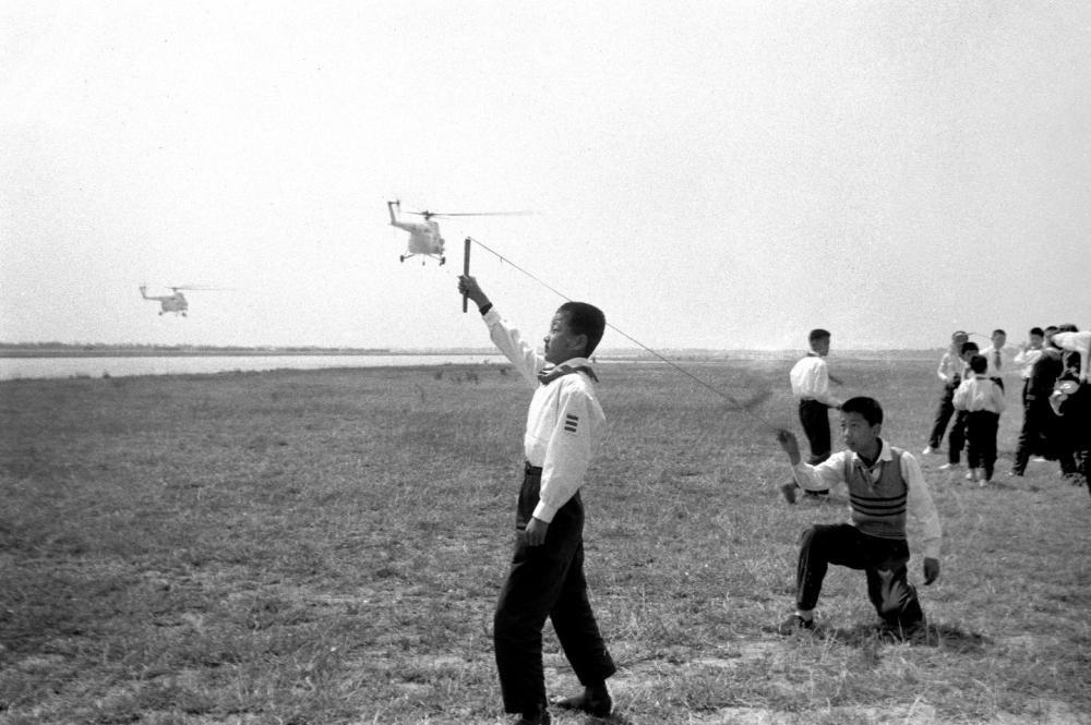 1981年“六一”国际儿童节前夕,当时的北京市宣武区少年科学技术馆,组织各小学学生与参加航模小组活动的少先队员到中国人民解放军空军某部参观学习。图为参加活动的少先队员在机场放他们自制的航模。
