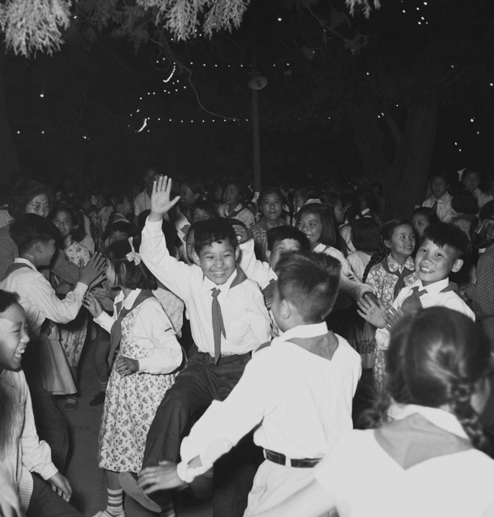 1957年5月31日晚上,北京市儿童在北京中山公园游园联欢,庆祝“六一”国际儿童节。