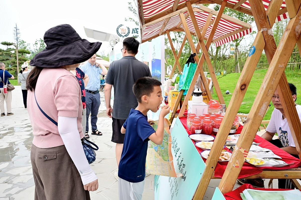 另一边,在眉山文旅宣传及产品展示展销区域,青神竹编、东坡泡菜、永丰大米等特色产品受热捧,工作人员现场发放“安逸走四川 好耍在眉山”文旅宣传资料,推介23个重点景区景点、110余家美食名店,吸引游客来眉山“吃、住、游、购”。