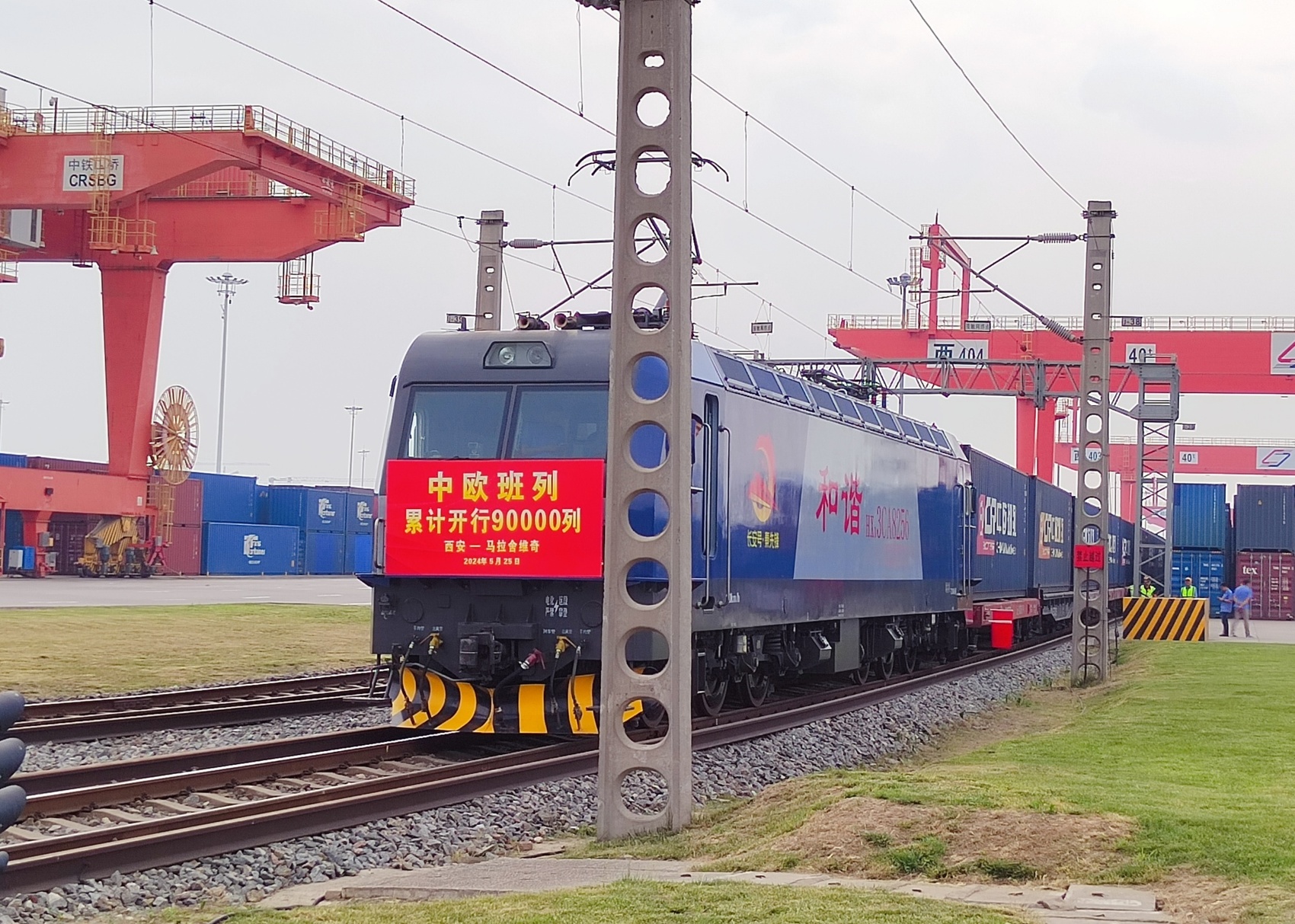 中欧班列,昼夜驰骋在欧亚大陆上,联通东西,畅通贸易,是“丝绸之路经济带”上的“钢铁驼队”。今年5月24日,随着X8157次中欧班列从西安国际港站发出,一路向西开去,中欧班列已经累计开行9万列。从2013年开行80列到2016年开行1702列,再到2023年开行1.7万列,十年来,中欧班列不断跑出“加速度”,目前已通达欧洲25个国家223个城市,连接11个亚洲国家一百多个城市,服务网络基本覆盖欧亚全境,年运输货值由2016年80亿美元增长到2023年的567亿美元。