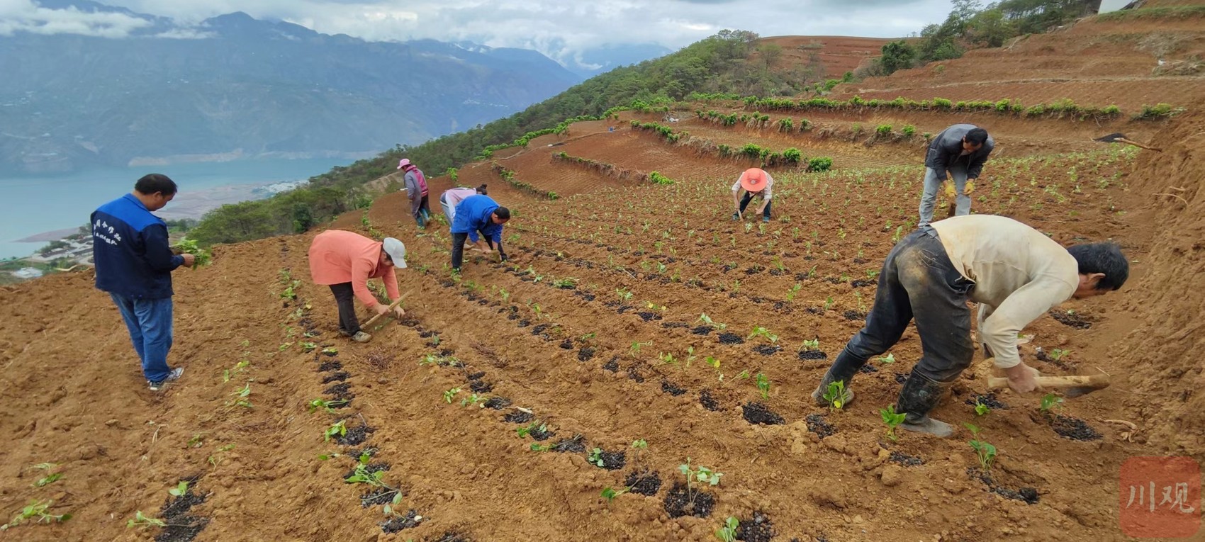 近日,在凉山州会东县大崇镇纸厂村,村民在田垄内移栽何首乌苗。“种植何首乌经济效益很不错,我家前年种了20亩,卖到20多万元,今年种植了40亩。”纸厂村村民刘光元说。
