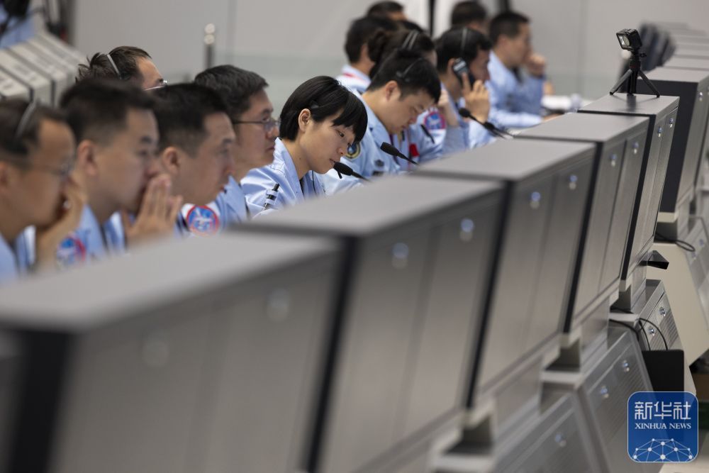 6月2日,北京航天飞行控制中心工作人员在监测嫦娥六号着陆月背动态。