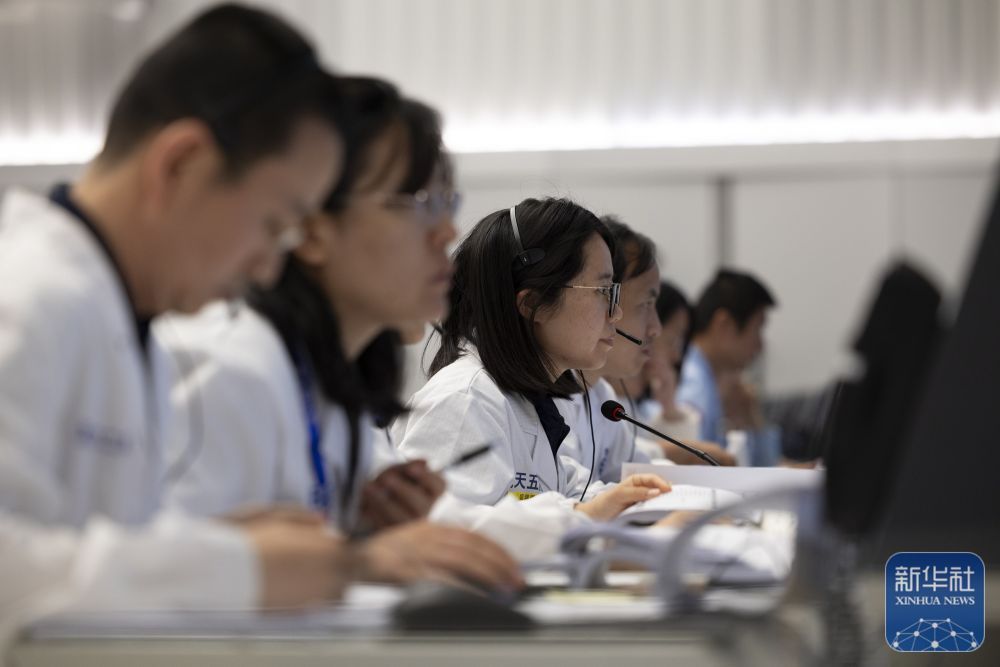 6月2日,北京航天飞行控制中心工作人员在查看嫦娥六号着陆器和上升器组合体传回的数据。