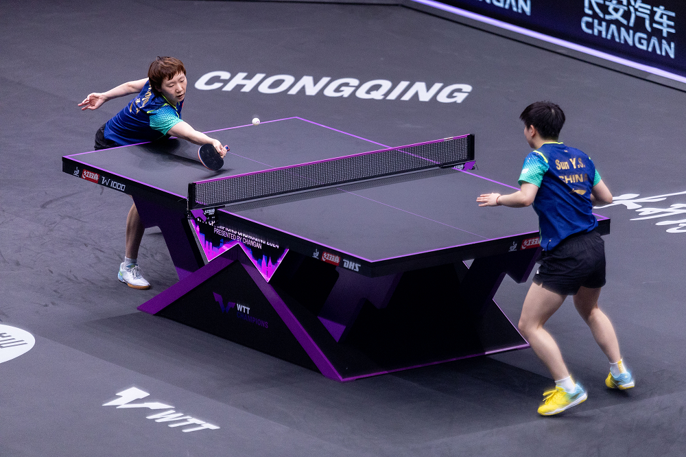 6月3日,在世界乒乓球职业大联盟(WTT)重庆冠军赛女单决赛中,孙颖莎以4比3战胜另一位中国选手王曼昱 ,获得冠军,王曼昱获得亚军。