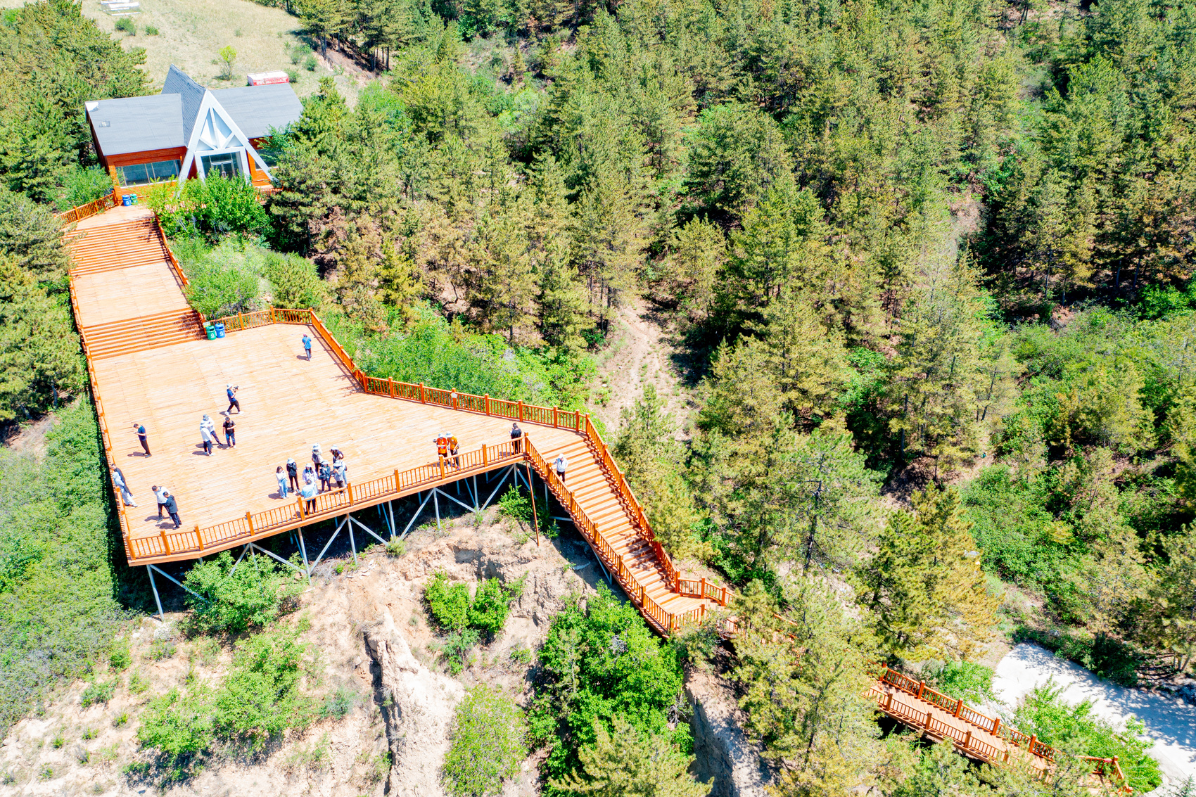 5月27日,澎湃新闻记者随采访团一行,站到公园的1号观景平台远眺,一望无际的绿色尽收眼底。