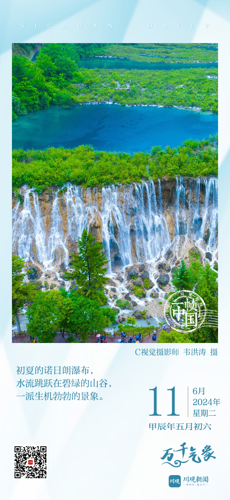 今天的《一帧中国》,川观新闻和您一起来到九寨沟景区最著名的景点之一——诺日朗瀑布,欣赏苍翠山林飞瀑流泉的美景。