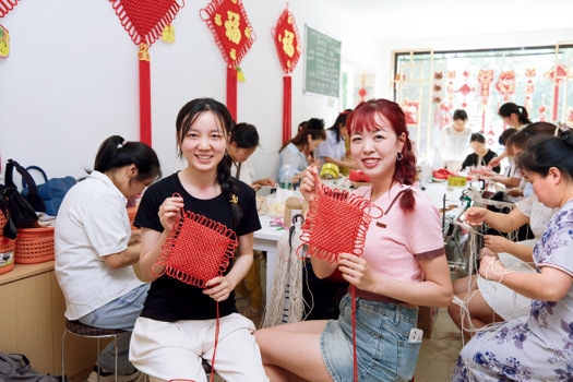 巴中市巴州区的“巾帼工坊”内,当地妇女正在接受技能培训。图 / 四川日报全媒体记者 郝飞