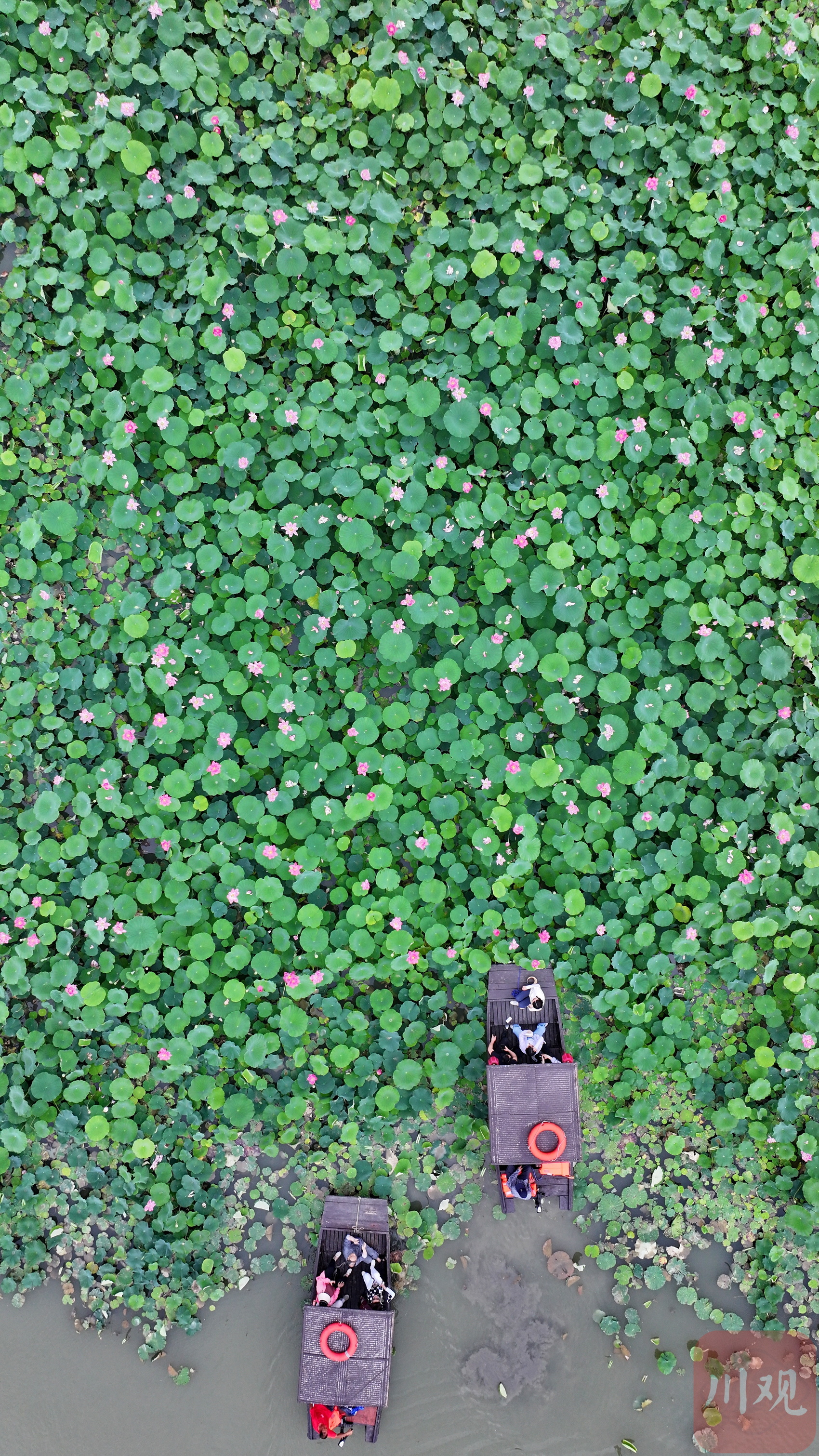 成都市新津区安西镇千亩荷塘进入最佳观赏期,吸引大批游客。