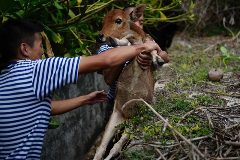 图为东岛官兵救治野牛。通讯员 周思鸿 摄